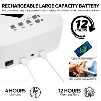 【3 Timer Setting & Auto Infrared Sensor】 – The cordless led nail light will automatically start when hands get in and automatically shut down when hands out or timer finish. 30s,60s,99s for better cure the gel polish according to your DIY needs and gel polish’s requirements.