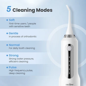 SEJOY Dental Oral Irrigator Water Flosser,5 Nozzles,USB Rechargeable 270ml Tank